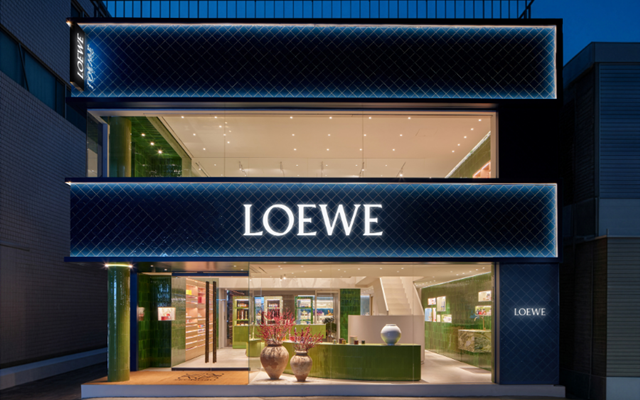 Toàn cảnh không gian cửa hàng LOEWE được phủ sắc xanh sống động